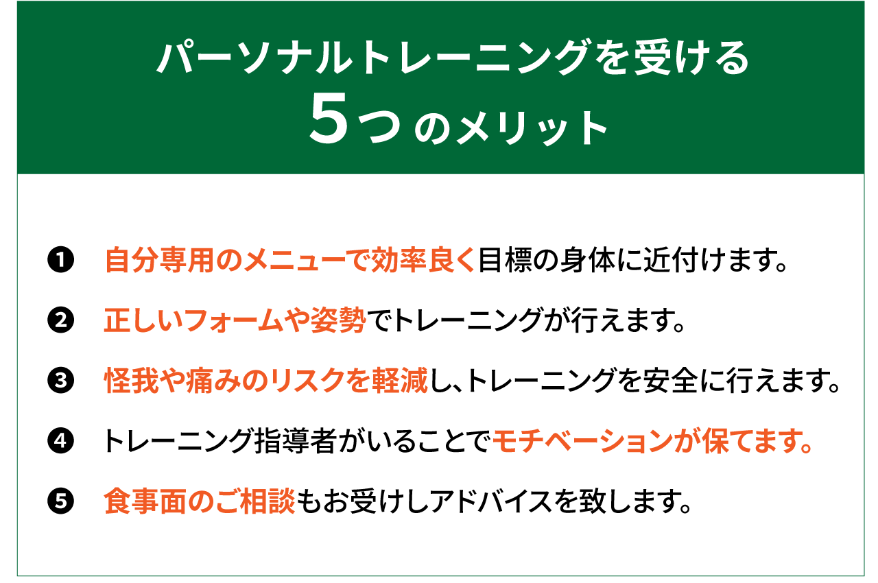 こちらのプランでは通常のパーソナルトレーニング1回分よりもリーズナブルにマンツーマン指導が受けられます。